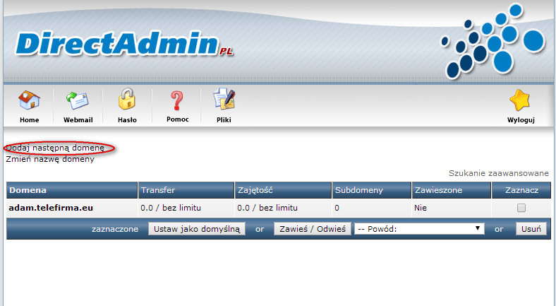 Jeśli już jesteśmy w posiadaniu danego hostingu (plany „Telefirma” lub „Tani serwer dla NGO”) to pora na pierwsze zalogowanie do panelu, przez który będziemy zarządzać swoim kontem. Obsługa jest dość prosta i osoby bez doświadczenia w administrowaniu stronami internetowymi powinny sobie z tym poradzić. Tym bardziej, że panel graficzny DirectAdmin jest dostępny w polskiej wersji językowej.